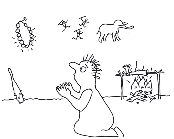 Представьте себе аборигена, все знания о мире и все навыки которого сосредоточены в увесистой палке, коей он недвусмысленно размахивает перед вашим носом. Подарите ему бусы из цветных, стеклянных шариков и он повесит их на стену у себя в пещере. Они для него теперь святыня, а для вас залог не получить палкой по голове. Не спрашивайте его, что в этих дешевых стекляшках кажется ему святым, а то точно заработаете шишку. По той-же причине не спрашивайте его о смысле, который он вкладывает в это понятие. Впрочем, вы все и сами прекрасно понимаете: он этого просто не знает. Не знает и все. Но очень уж бусы красивые. Таинственно мерцая в отблесках костра, на котором поджаривается нога врага из соседнего племени и мелодично перестукивая на пещерном сквозняке, они приводят его в состояние экзальтации близкому к экстазу.