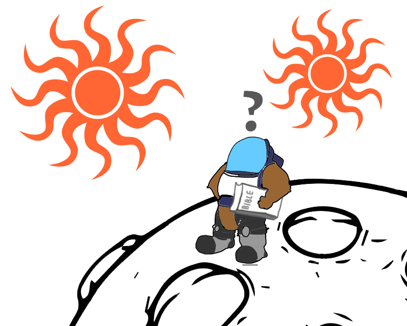 Представьте себе, что вы стоите в вашем прогулочном скафандре на склонах марсианского кратера Езеро. В ваших руках библия. Глядя на оранжевое небо над вами, вы периодически заглядываете в книгу, пытаясь найти соответствия. Солнце вроде есть. Маленькое, неяркое, но какое-никакое солнышко. Ставите галочку. А вот с луной проблема. Не то, чтобы её нет, просто их две и такие маленькие, что "отделять свет от тьмы" совершенно не в состоянии. С земной твердью проблем еще больше. Во-первых, она не земная, а во-вторых, тут нет воды, которая в соответствии с книгой в ваших руках должна была эти тверди как-то разделять. Также тут нет растений и животных. Нет воздуха. Нет тут и человека (кроме вас, конечно). Живи тут какие-то разумные существа, они бы очень подивились, читая вашу книжку.